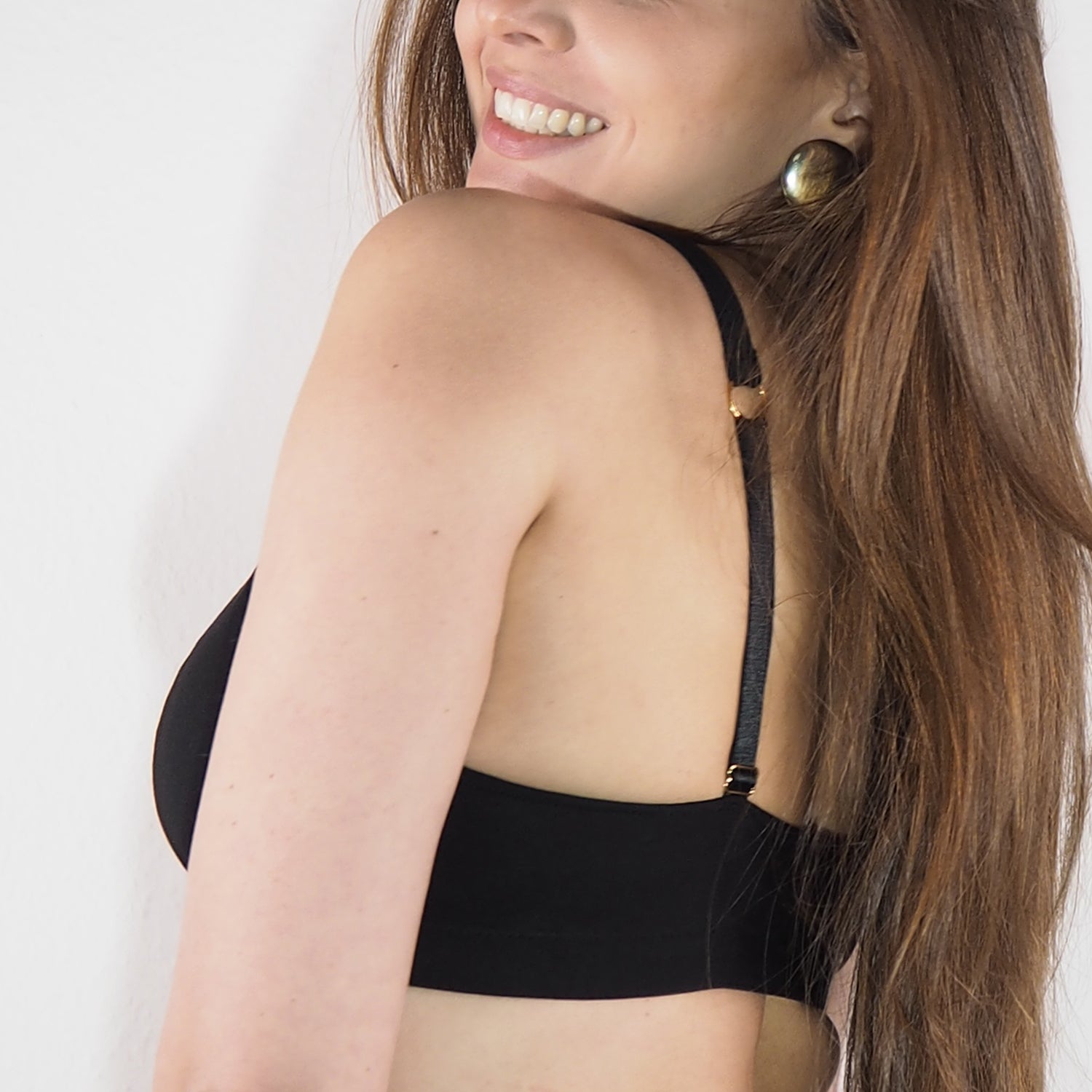The Ecophoria triangle bralette redefines elegance and comfort. Made from luxurious, eco-friendly Tencel jersey inside and out, this bralette combines effortless style with conscious craftsmanship. The gold-plated front closure adds a touch of sophistication, while the adjustable straps allow for a perfect, personalized fit. Whether you're lounging or layering, this bralette is a must-have for those who want to feel chic while staying sustainable.