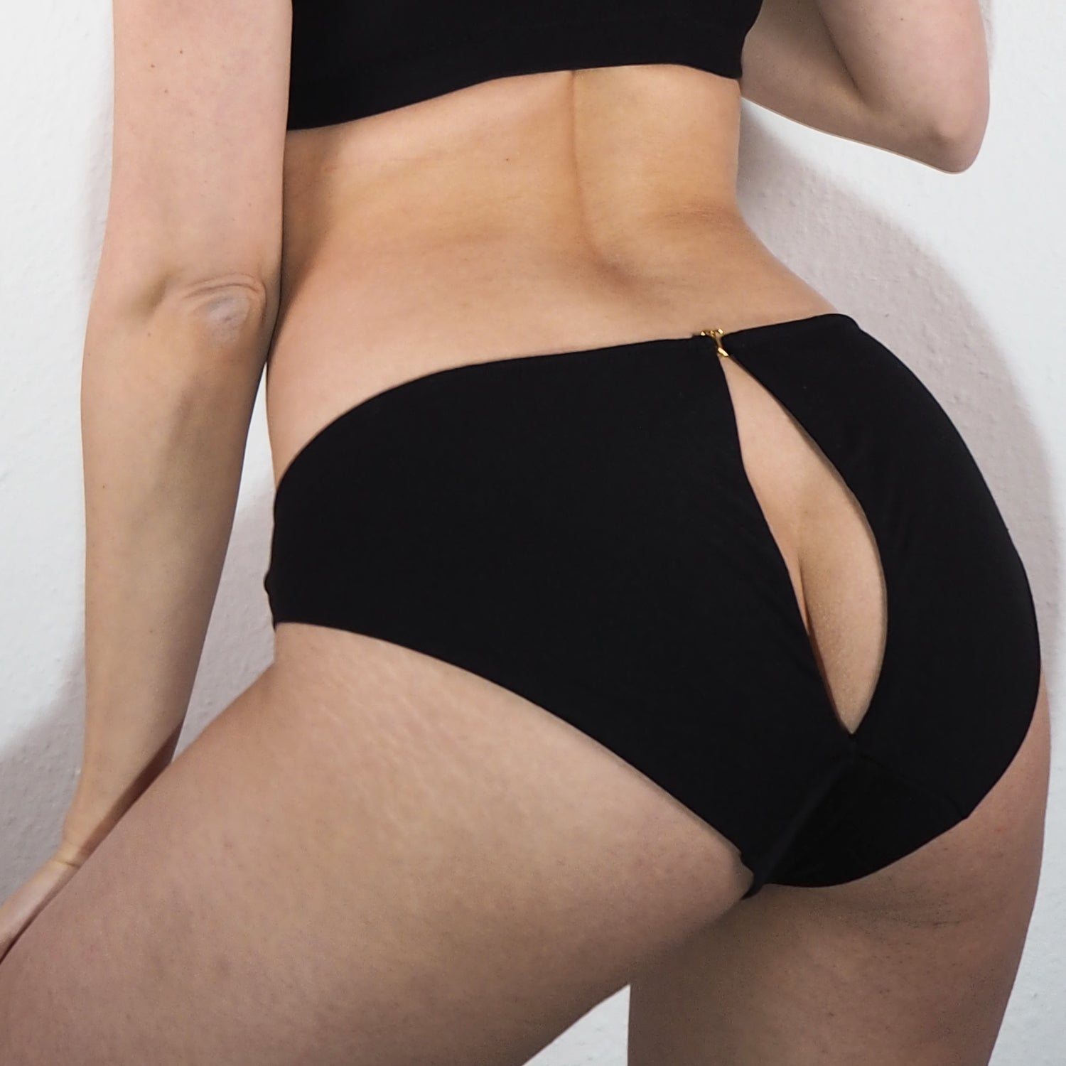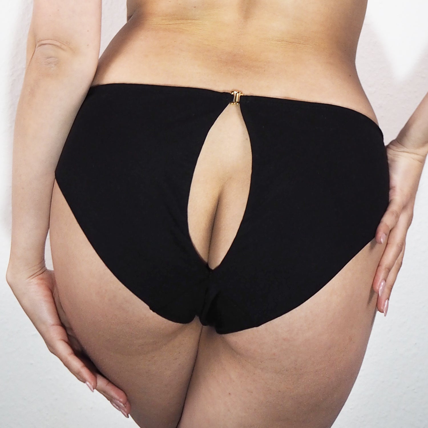 The Ecophoria ouvert panty is the perfect mix of seductive and sustainable. Crafted from 100% eco-friendly Tencel, this panty offers ultimate comfort with a luxurious feel. The open gusset and swan hook closure at the back add a daring touch, while the no-elastic design around the legs ensures a smooth, irritation-free fit in the bottom. This piece embodies sophistication, style, and sustainability all in one.