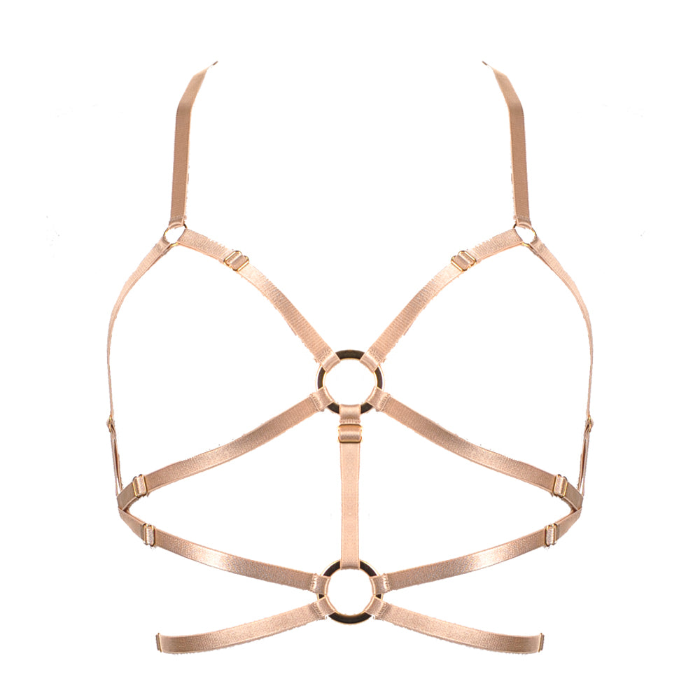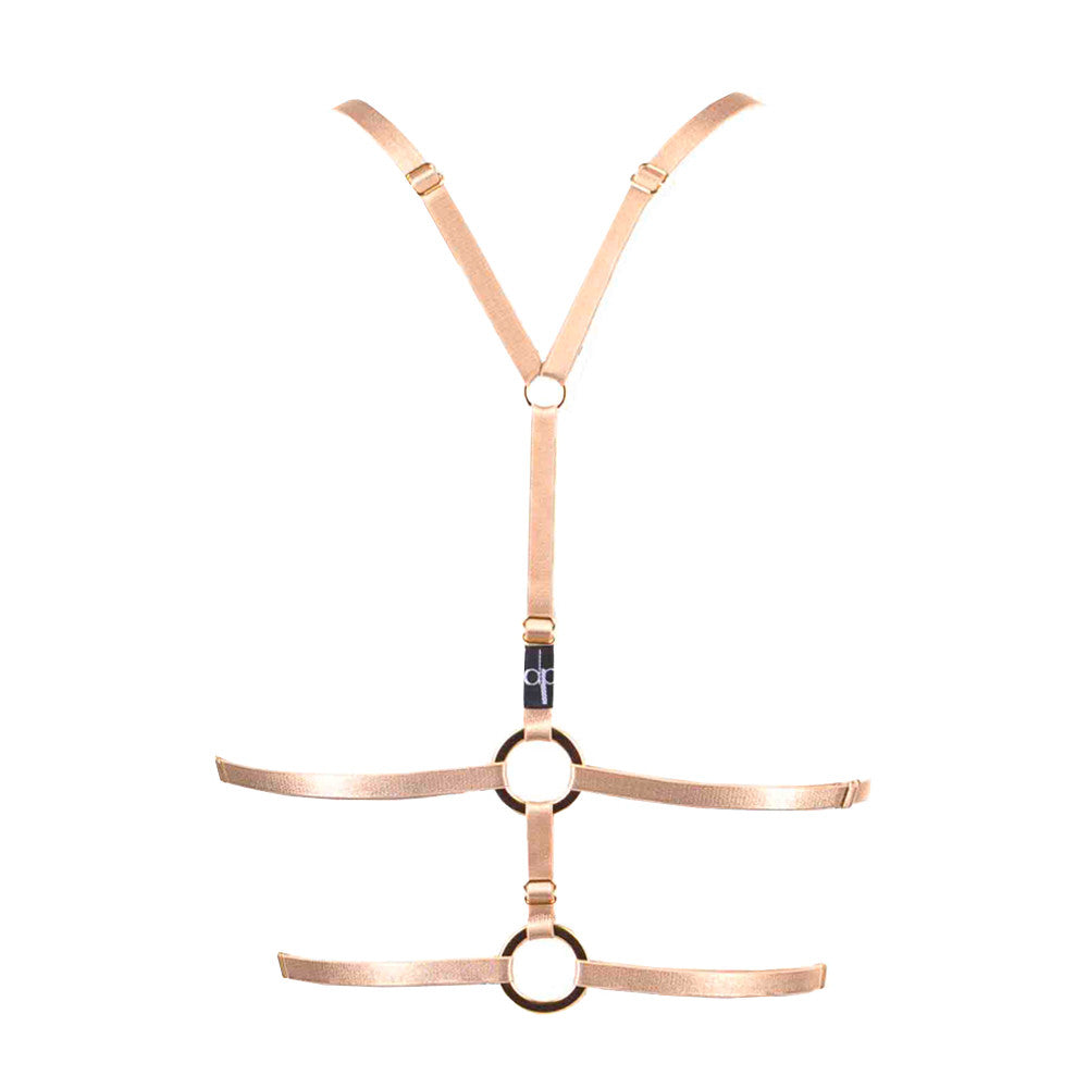 The Bon Bondage upper body harness slim is like the classic Bon Bondage harness, but with 10mm satin elastics. The lingerie piece is the ultimate statement accessory and will make you feel incredibly sexy and confident. Every single elastic is fully adjustable with nickel free gold plated rings and sliders, so the playsuit can be adjusted to suit all body types from sizes XS-XL.
