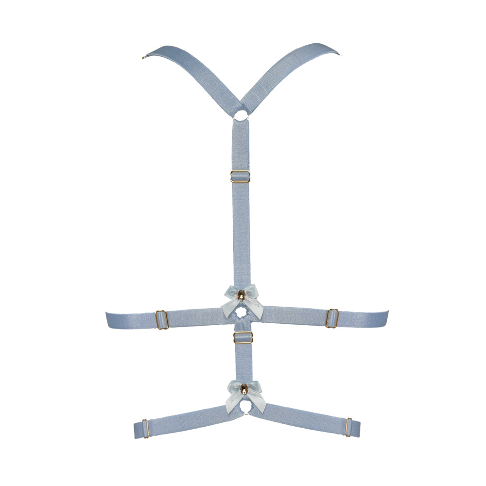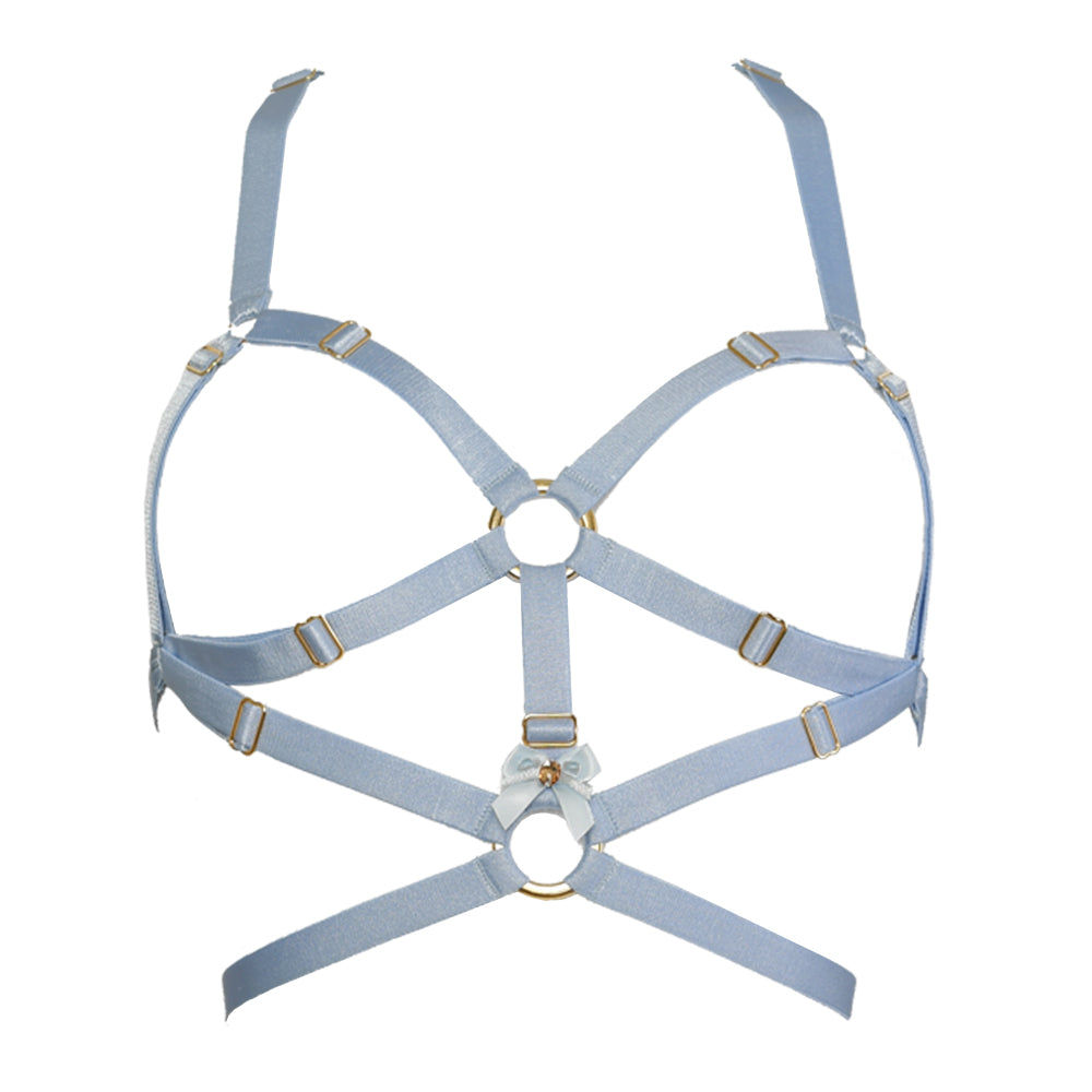 The Something Blue upper body harness is the ultimate statement accessory and will make you feel incredibly sexy and confident. Every single elastic is fully adjustable with nickel free, gold plated rings and sliders, so the playsuit can be adjusted to suit all body types from sizes XS-XL.
