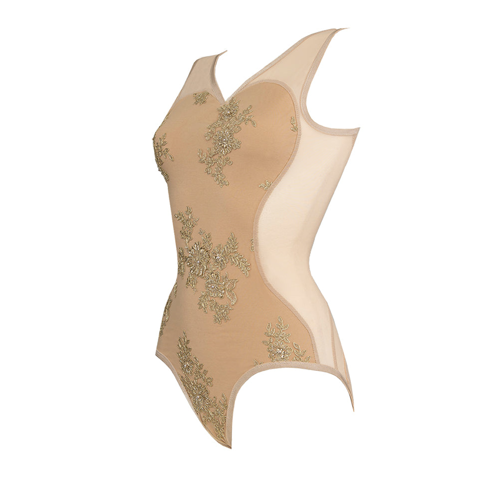 The Hey Sugar Mama, come and dance with me! body is a must have addition to every bodysuit fan's lingerie drawer. Sheer tulle panels in the back (no VPL in the legs!), forming, topstitched seams and a luxuriously embroidered mesh panel in the front make a unique, yet comfortable (organic cotton lined!) statement lingerie piece.