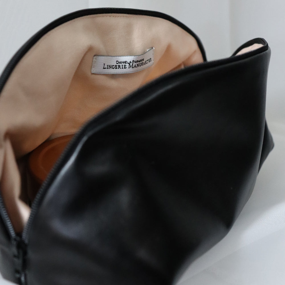 It is fully lined with organic cotton satin and comes with two zippers, which transform the bag into a super practical (and super pretty!) beauty tool holder for your bathroom shelf.