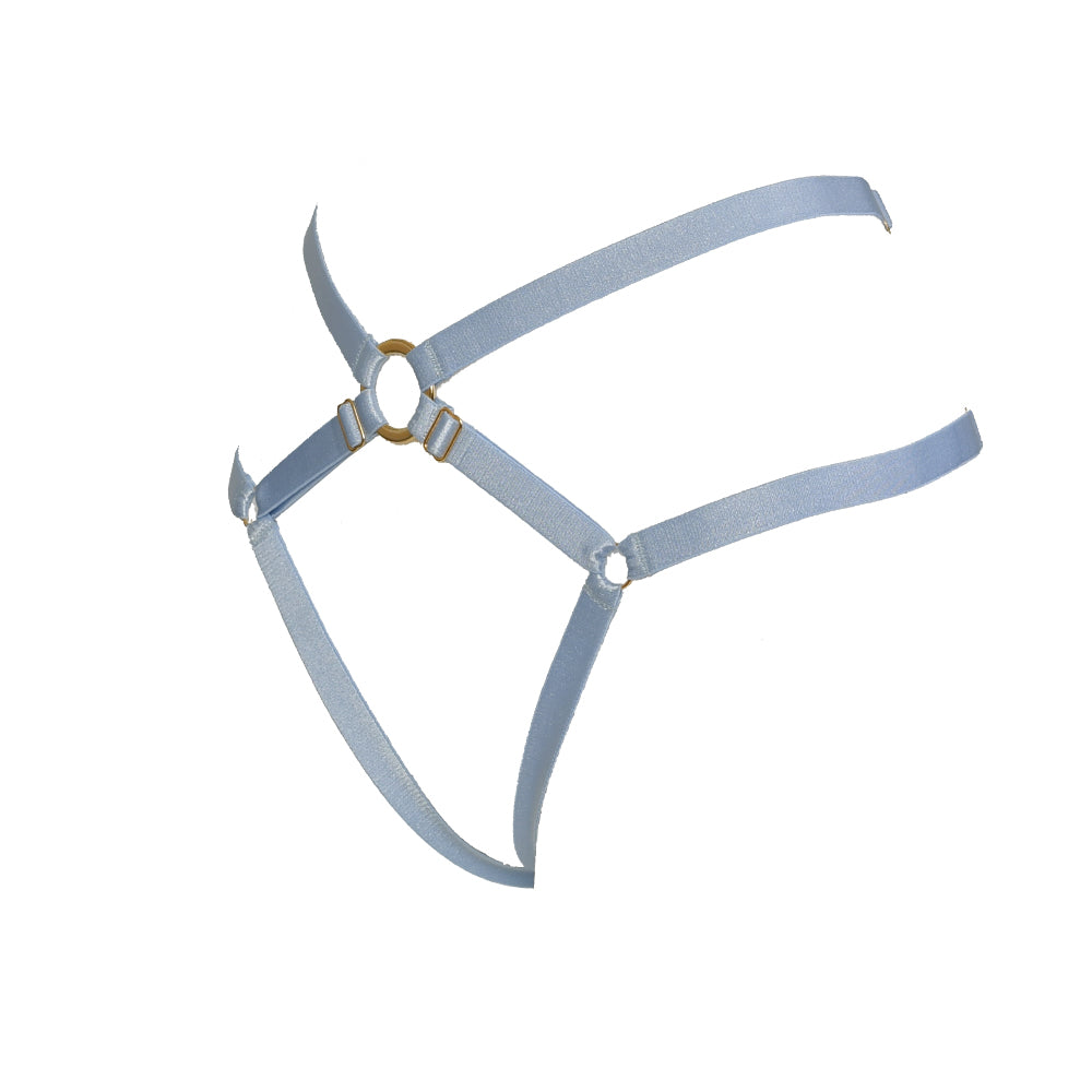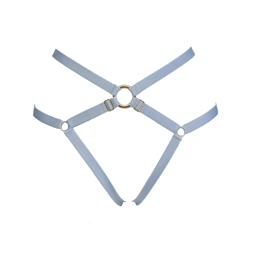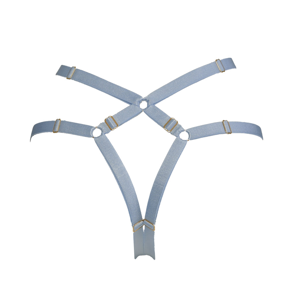 The Something Blue harness thong is the ultimate statement accessory and will make you feel incredibly sexy and confident. Every single satin elastic is fully adjustable with nickel free gold plated rings and sliders, so the playsuit can be adjusted to suit all body types from sizes XS-XL.