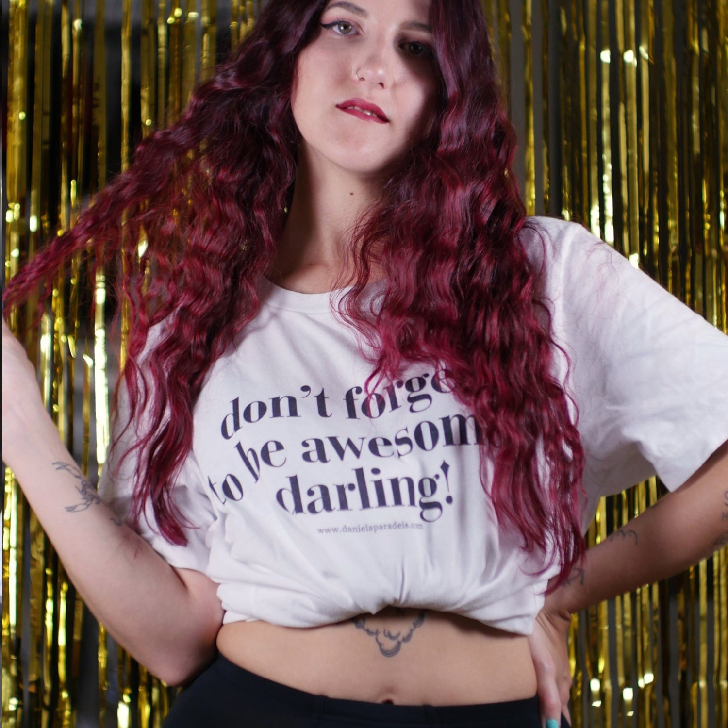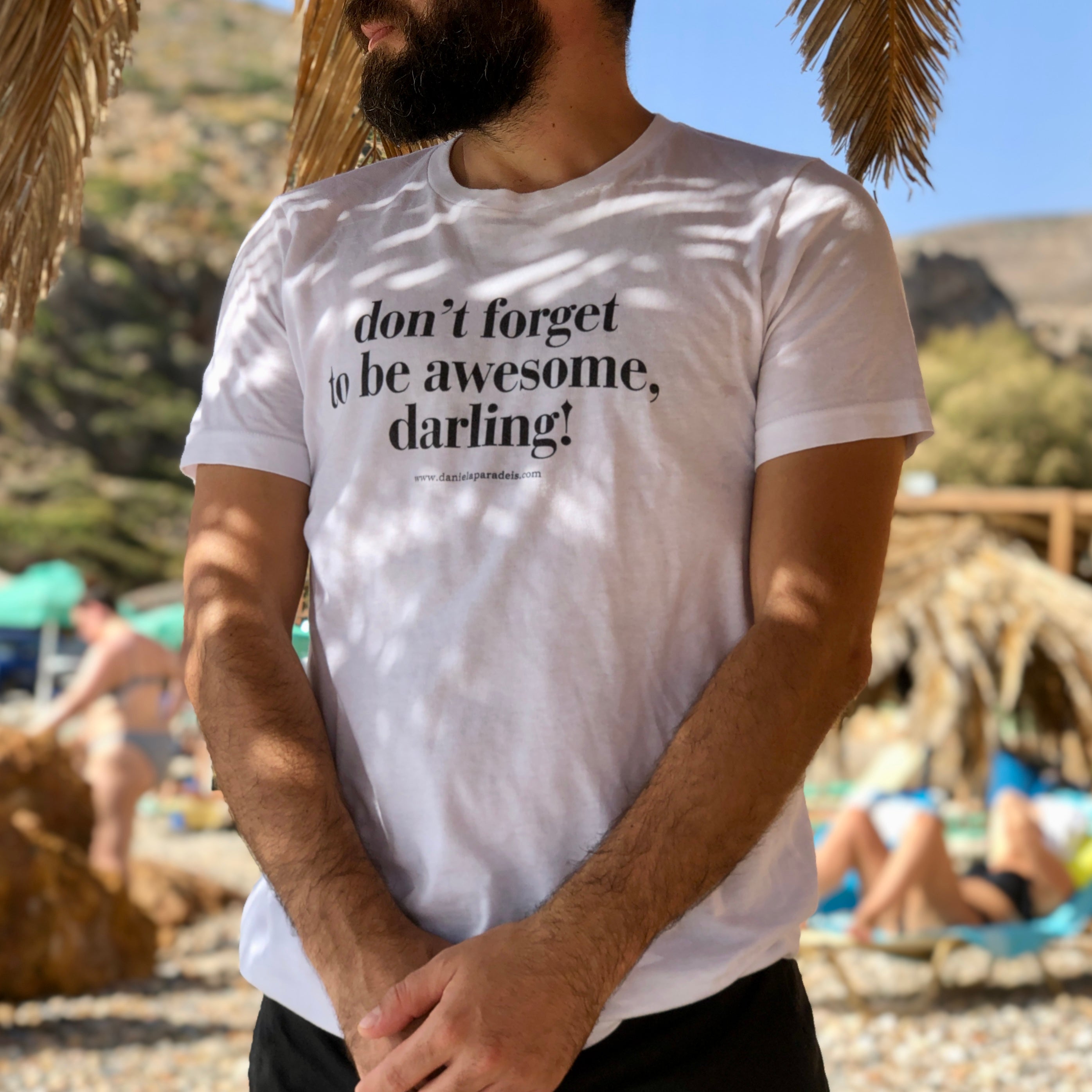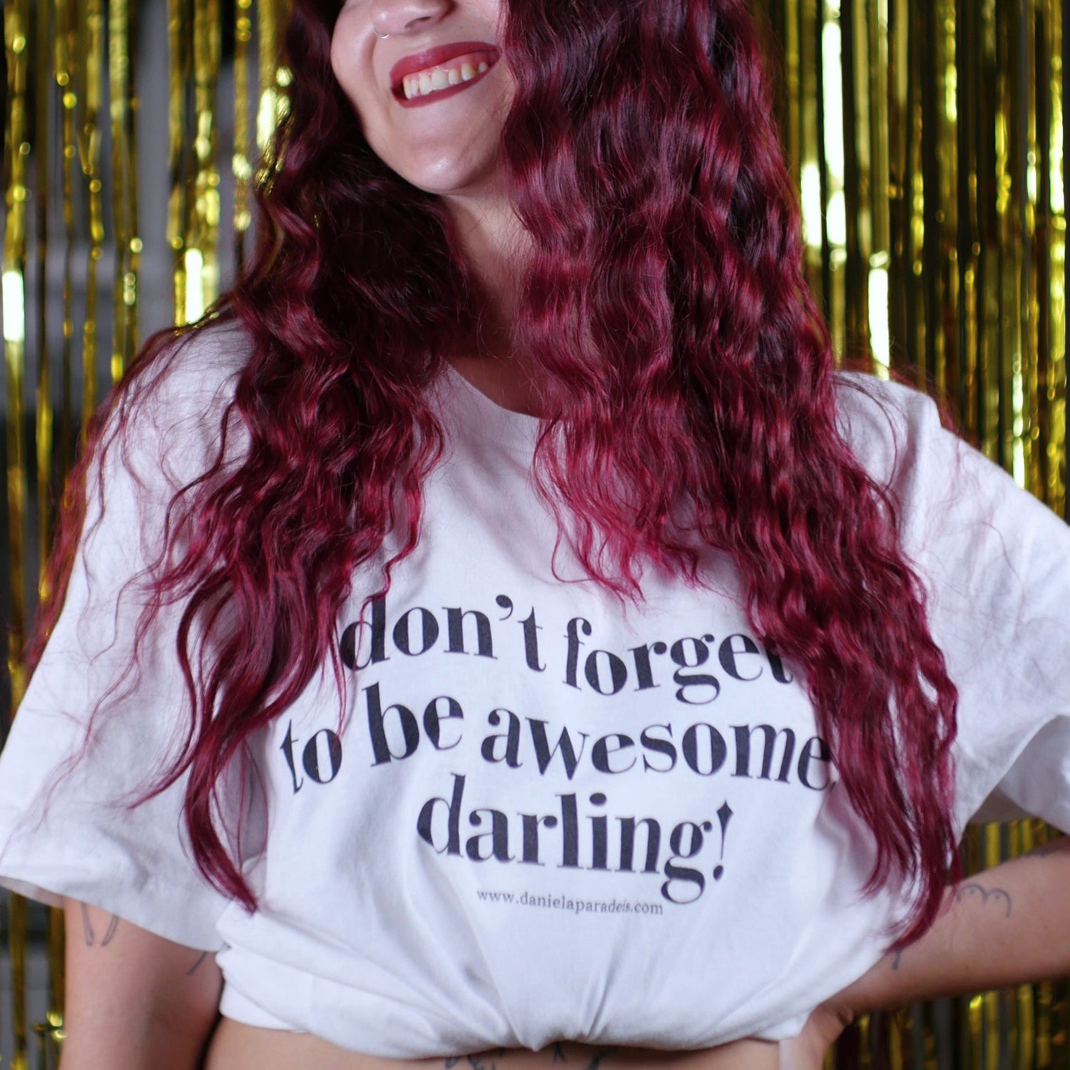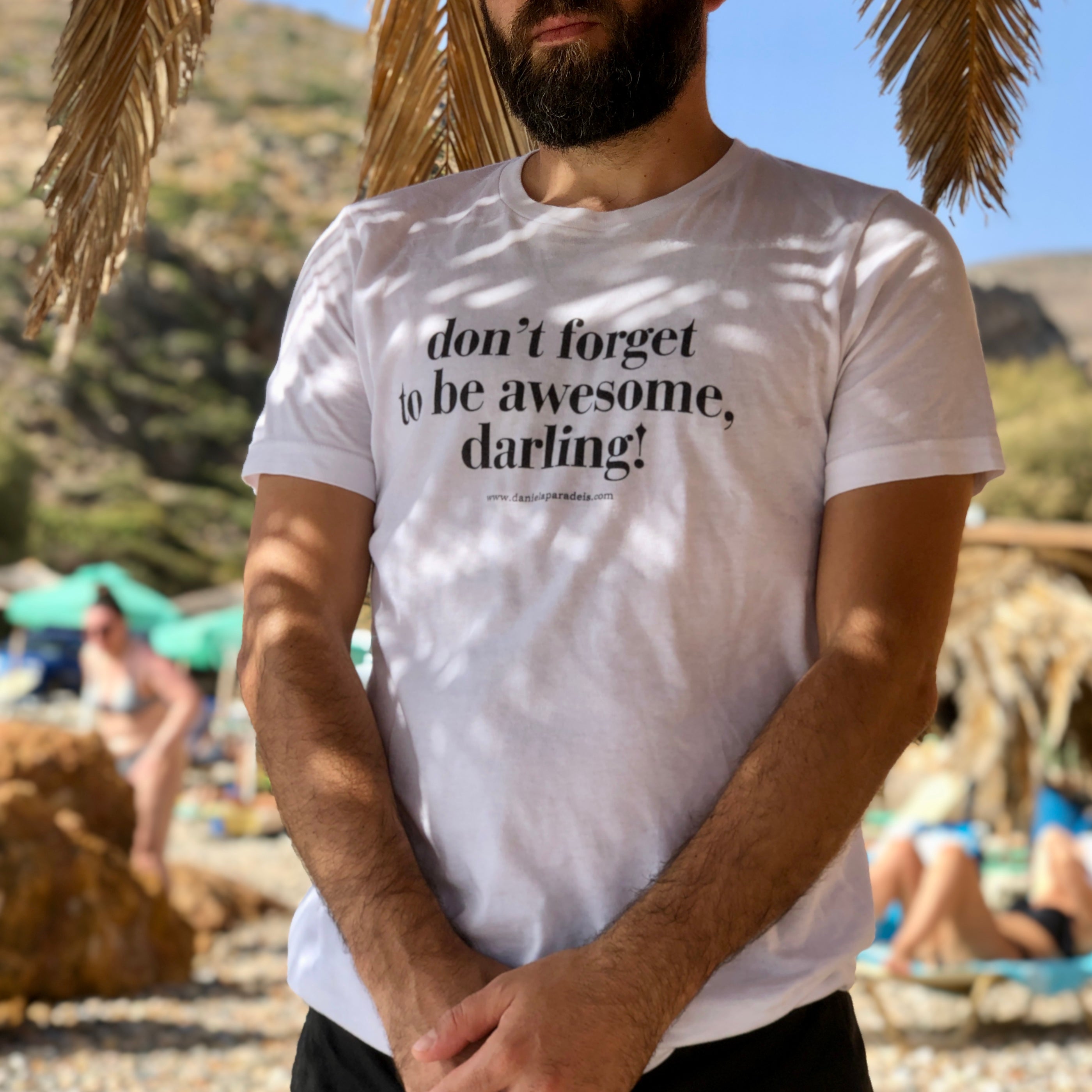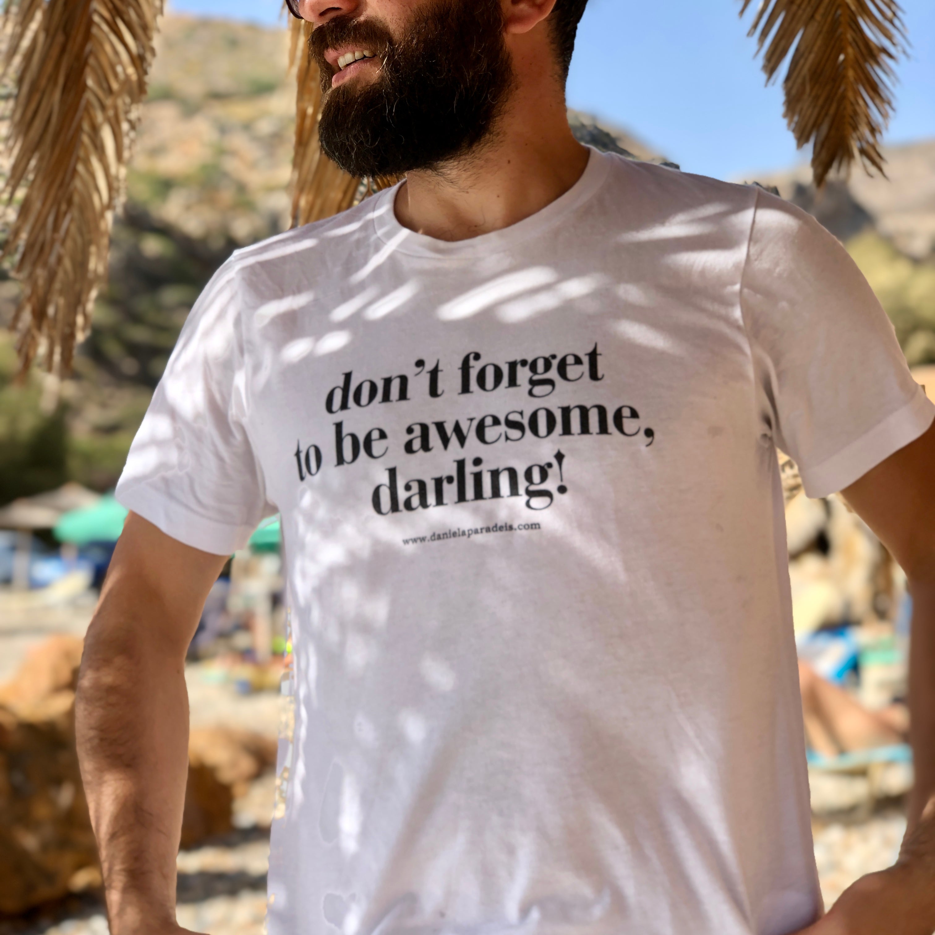 Designed for all genders, the "Don’t forget to be awesome, darling!" T-shirt ensures a relaxed fit that flatters all body types and sizes, while the soft cotton provides ultimate comfort for all-day wear.