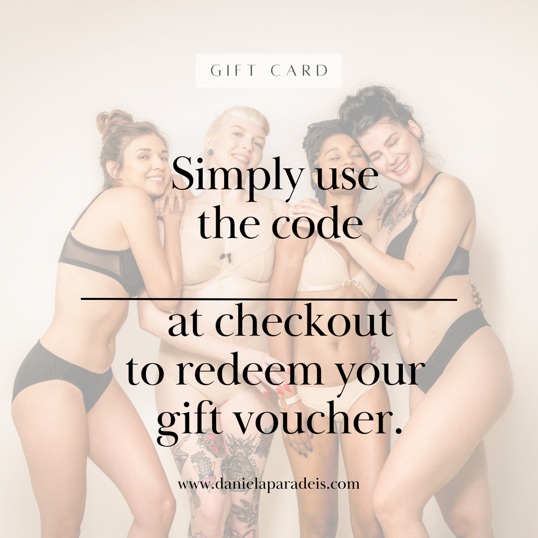 Purchasing lingerie and swimwear online can always feel a bit risky. Drop me a message in the chatbox down below or send an email to info@danielaparadeis.com and I will be happy to help you find the right size for you.