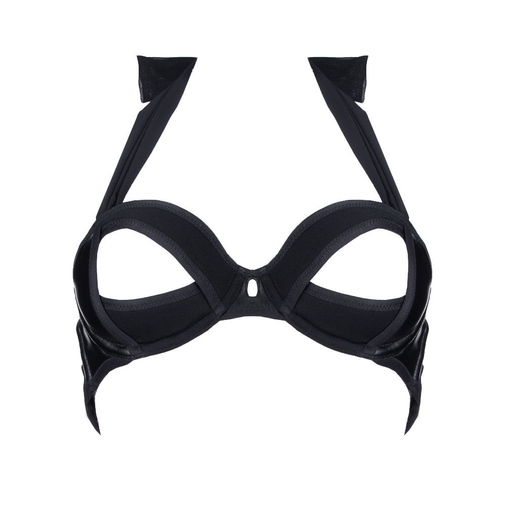 Nicht nur die Körbchen geben tiefen Einlicke, auch das Mittelstück lässt ein bisschen Haut hervorblitzen. Eingefasst mit weichen Elastikbändern, kombiniert der "Bon Bondage" Ouvert Bra angenehmen Microfaser mit glänzendem, veganem Leder. Trag den Ouvert Bra mit dem verstellbaren Neckholderträger oder wechsle zu den langen Chiffonträgern für einen ganz besonderen Lingerie Look. Sei kreativ! Wickle den schmeichelnden Chiffon um den Körper oder binde ihn zur einfachen Masche im Nacken. Das Ausziehen macht besonders viel Spaß mit der verführerischen Chiffonschleife im Rücken.