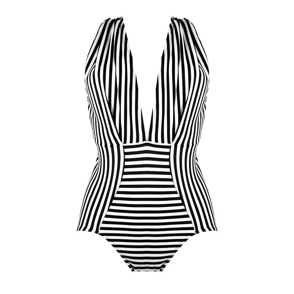 Schwarz-weiße Streifen, ein tiefer V-Ausschnitt und ein hoher Taillenbund – der Dandy Striper Badeanzug bringt Retro-Charme mit einem modernen Twist. Perfekt für alle, die den Matrosen-Look lieben und gleichzeitig zeitlose Eleganz feiern wollen. Dein neuer Lieblingsbegleiter für die Sonne – ob am Pool oder am Strand. Setze Segel, die Reise beginnt!