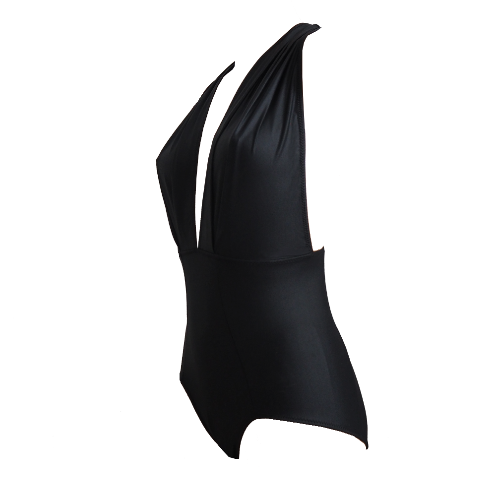 Gefertigt aus einem Leder-Effekt-Stoff, lässt das Material die schwarze Farbe in einem atemberaubenden Spiel aus Licht und Schatten lebendig werden. Der edle Glanz des Stoffes hebt die Ästhetik des Badeanzugs hervor, während seine High-Tech-Eigenschaften für Formbeständigkeit sorgen – und deine Kurven mit Charme und Eleganz perfekt in Szene setzen.